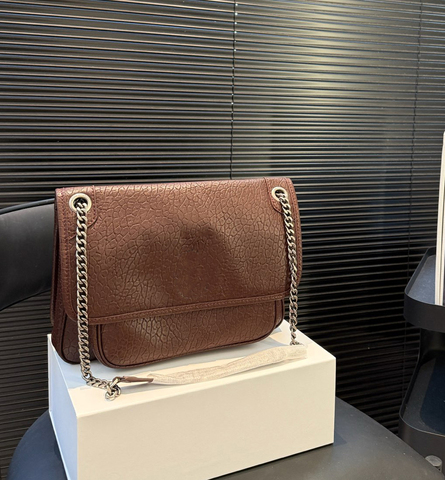 תיק Cowhide קיבולת גדולה של נשים cowhide עם שרשרת כתף אופנתית חדשה בסגנון פוליאסטר רירית תיק כתף בסגנון חדש