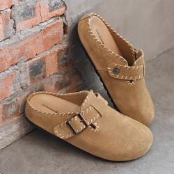 2025 אופנתי לנשים נעלי בית עם uppers מעור אמיתי וגומי רירית
