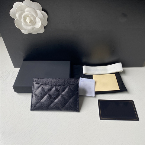 Cartera clásica de lujo original para tarjetas de una sola calidad con estampado de diamantes de cuero genuino de longitud corta con cierre de cremallera
