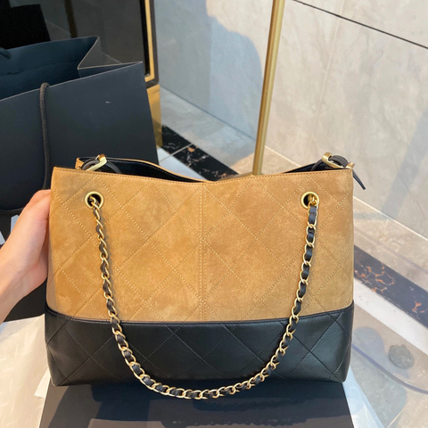 Women's High-End Boston Suede Crossbody Bag Retro Zipper Shoulder Strap Chain Canvas Lining Two Handles Letter Portable